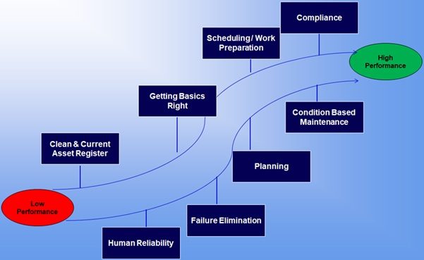 The reliability of a plant or facility, or how long a period it runs before an unplanned stoppage, determines its performance. Process safety, environmental and cost performance all depend on it. It is thus a pivotal driver, which can be used to make significant business gains. Sustainable improvement requires a systematic and structured approach. M2K have developed ‘The Reliability Improvement Process’ (TRIP™), a stairstep process (illustrated above) that will enable facilities to attain high levels of safety, product quality and production volumes, at the lowest sustainable operating cost.